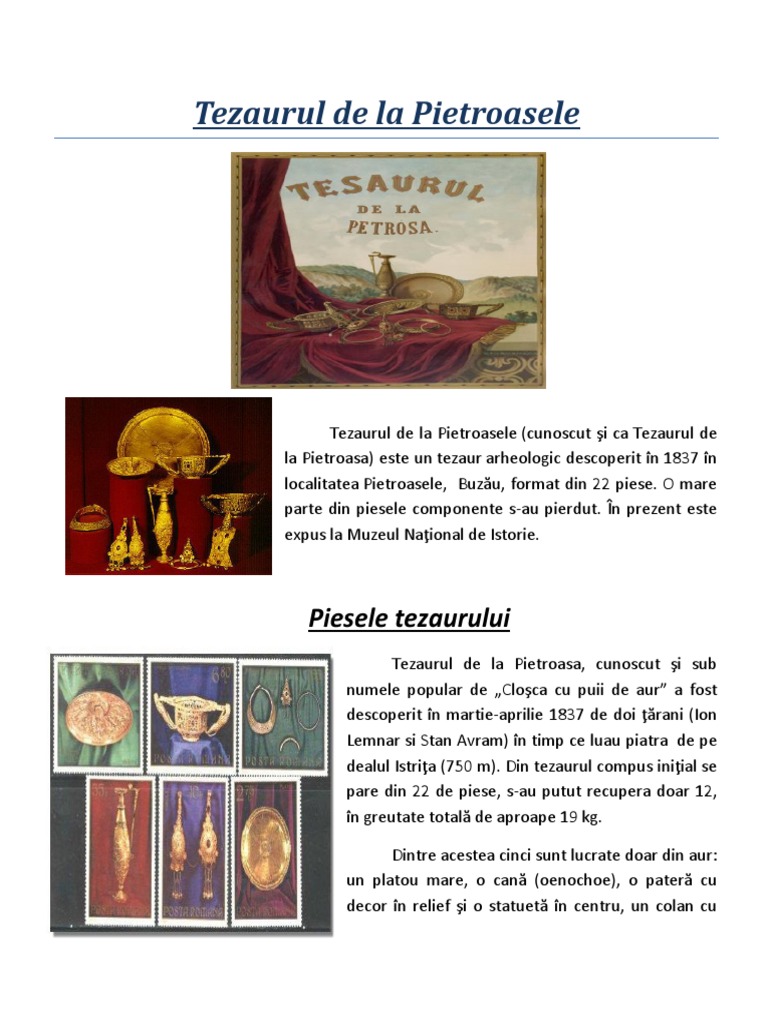 Ne referim aici doar la closca cu puii de aur, nu la tezaurul băncii naționale a româniei. Tezaurul de la pietroasele (cunoscut si ca tezaurul de la pietroasa) este un tezaur arheologic descoperit in 1837 in localitatea pietroasele, buzau, format din 22 piese. Tezaurul „cloșca cu puii de aur.