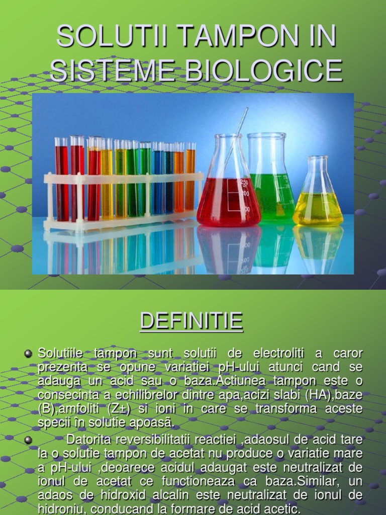 Solutıı tampon ın sısteme bıologıce. Se poate spune deci că prezintă efect de tampon. Tampon sistemleri genellikle zayıf bir asit ve tuzu veya zayıf bir baz ve tuzundan oluşur.