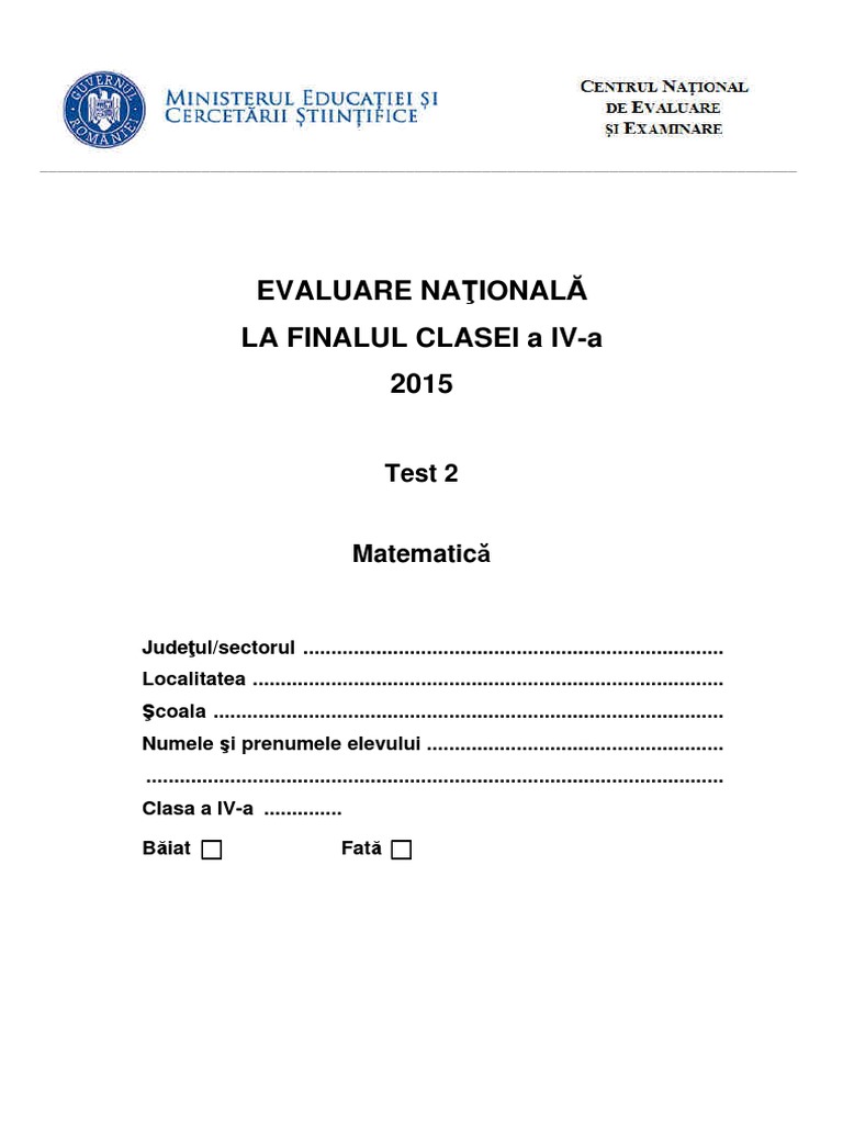 Rezolvarea detaliata a testului 4 de antrenament propus de ministerul educatiei pentru evaluare nationala 2021#evaluarenationala #en2021 #pauzademate. Rezultatele individuale pe care le obtin copiii nu se trec in catalog, nu se comunica public si. Teste pisa evaluare nationala clasa 2, clasa 4 si clasa 6.
